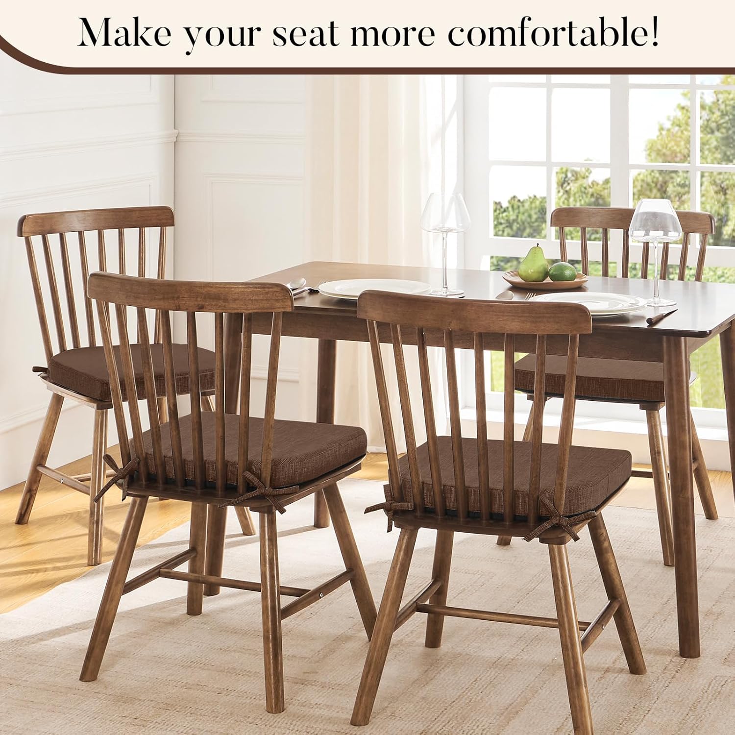 Basic Beyond Chair Cushions for Dining Chairs 4 Pack, Memory Foam Chair Cushion with Ties and Non Slip Backing, 16 x 16 inches Chair Pads for Dining Chairs(Brown)