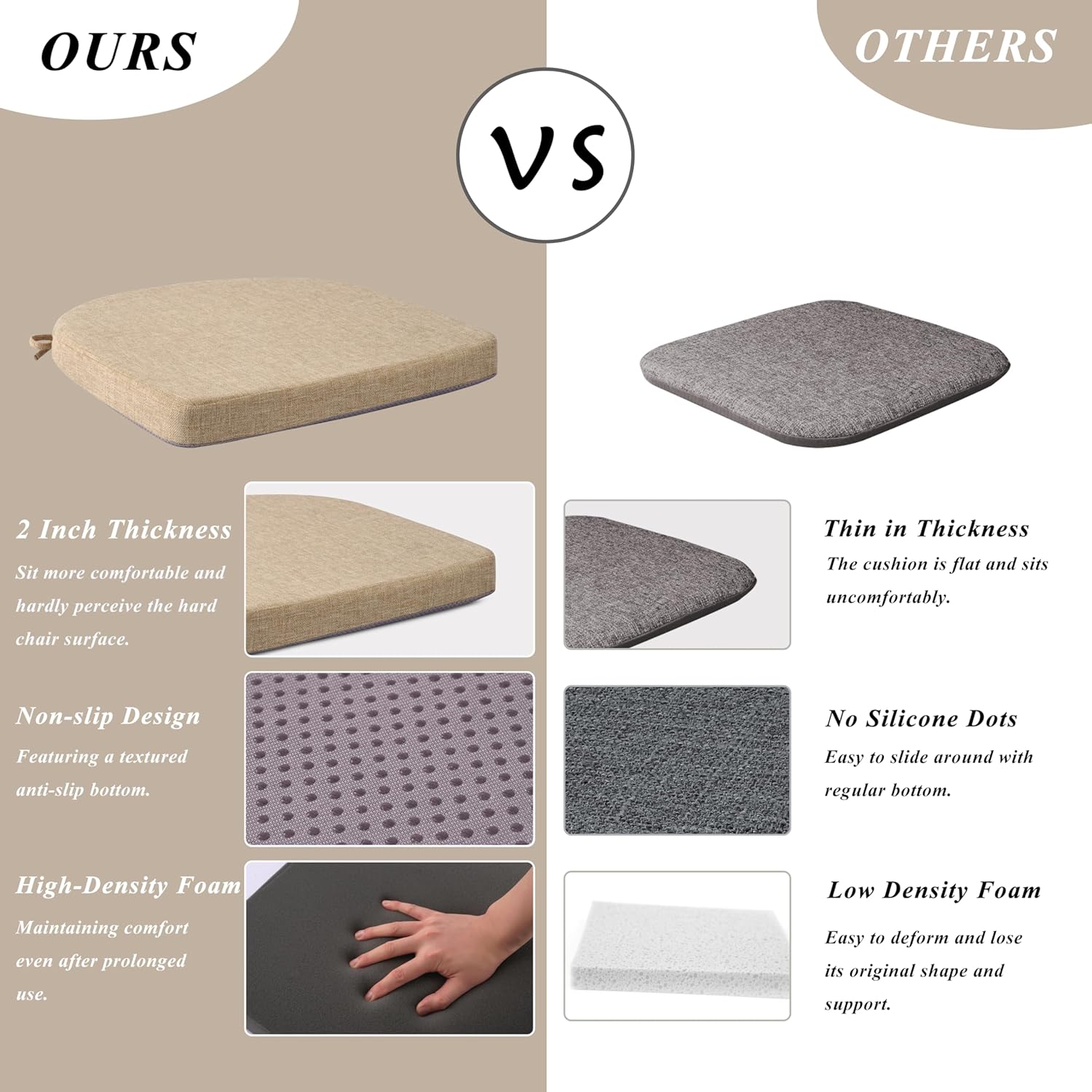 Chair Cushions for Dining Chairs 4 Pack Textured U-Shaped Kitchen Chair Cushions with Ties and Non-Slip Backing Indoor Chair Pads with Removable Cover (17"x17" Beige)
