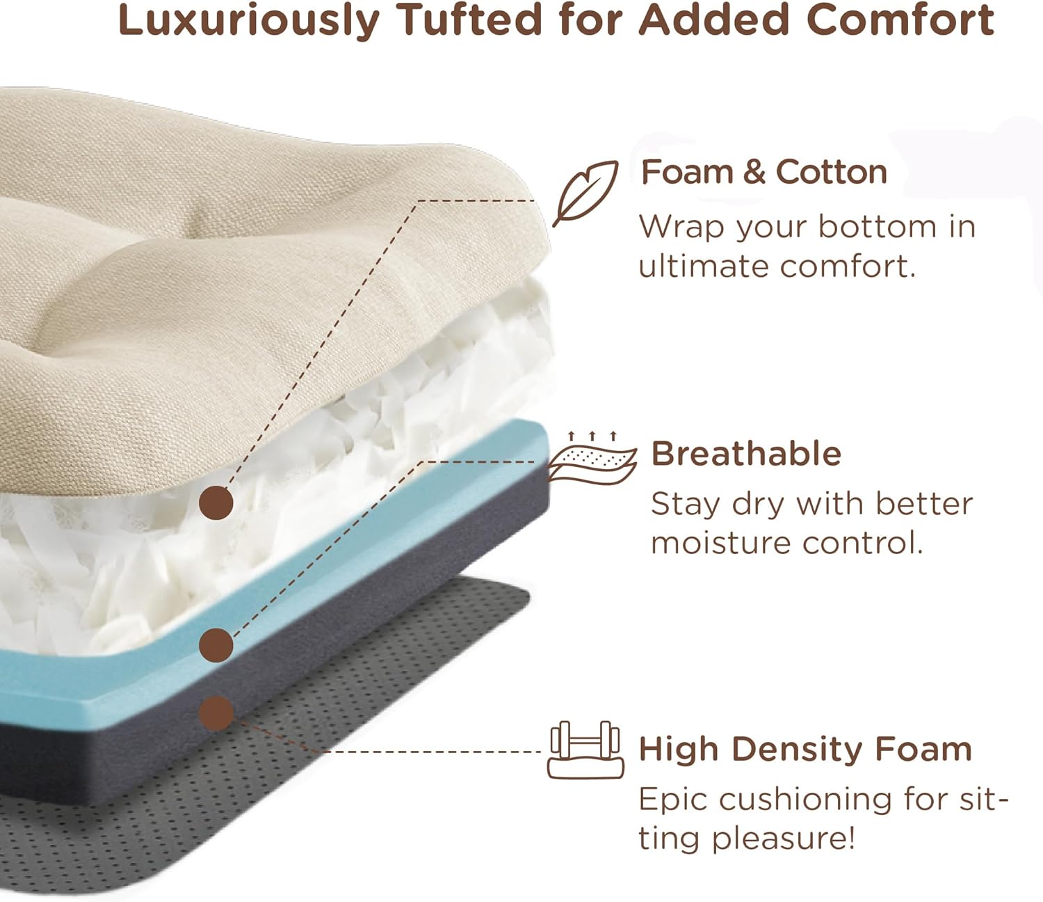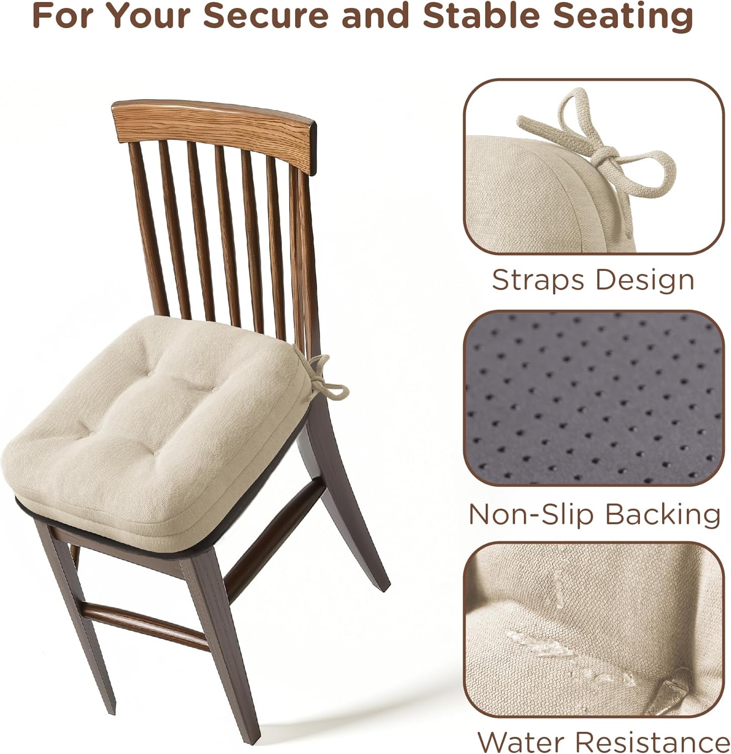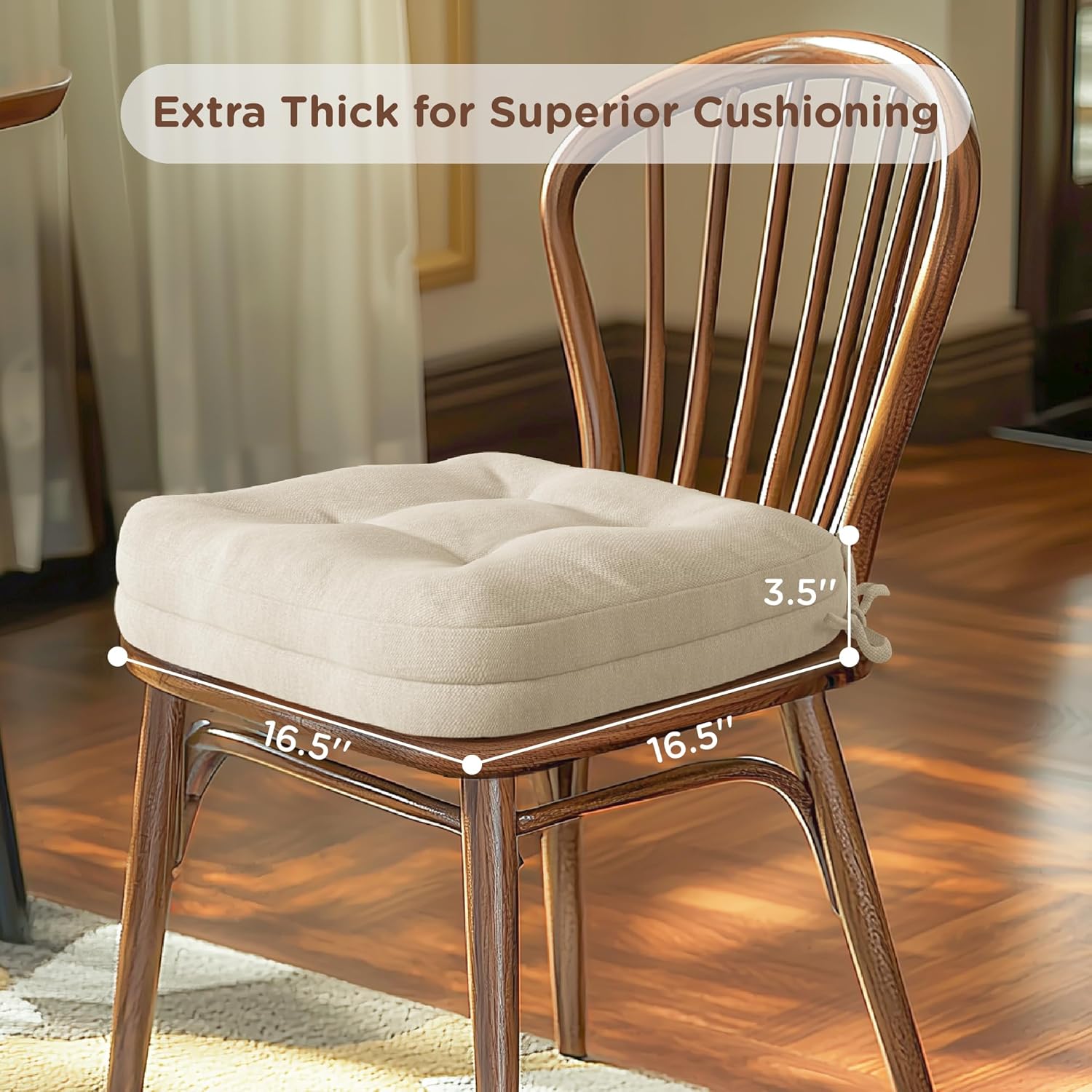 Codi Dining Chair Cushions 4 Pack, Thick Chairs Pads for Indoor Kitchen Room - Washable, Non-Slip Seat Cushion with Ties, 16.5"x16.5"x 3.5", Set of 4, Beige