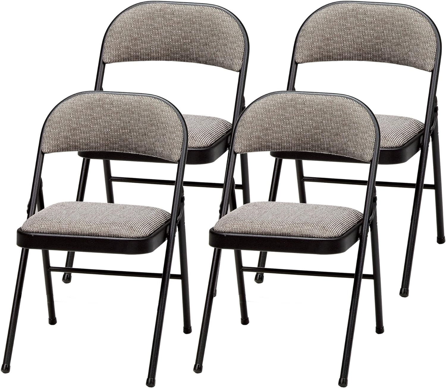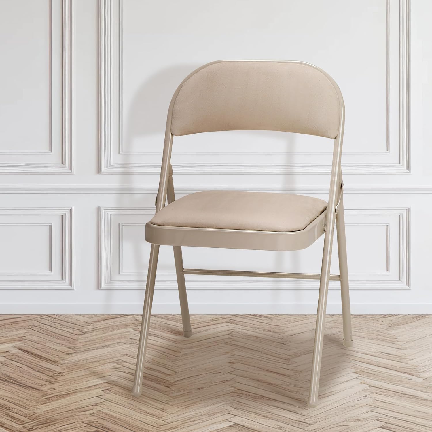 MECO 4 Pack Padded Folding Chairs, Cushioned Sand Fabric Foldable Chair, Buff