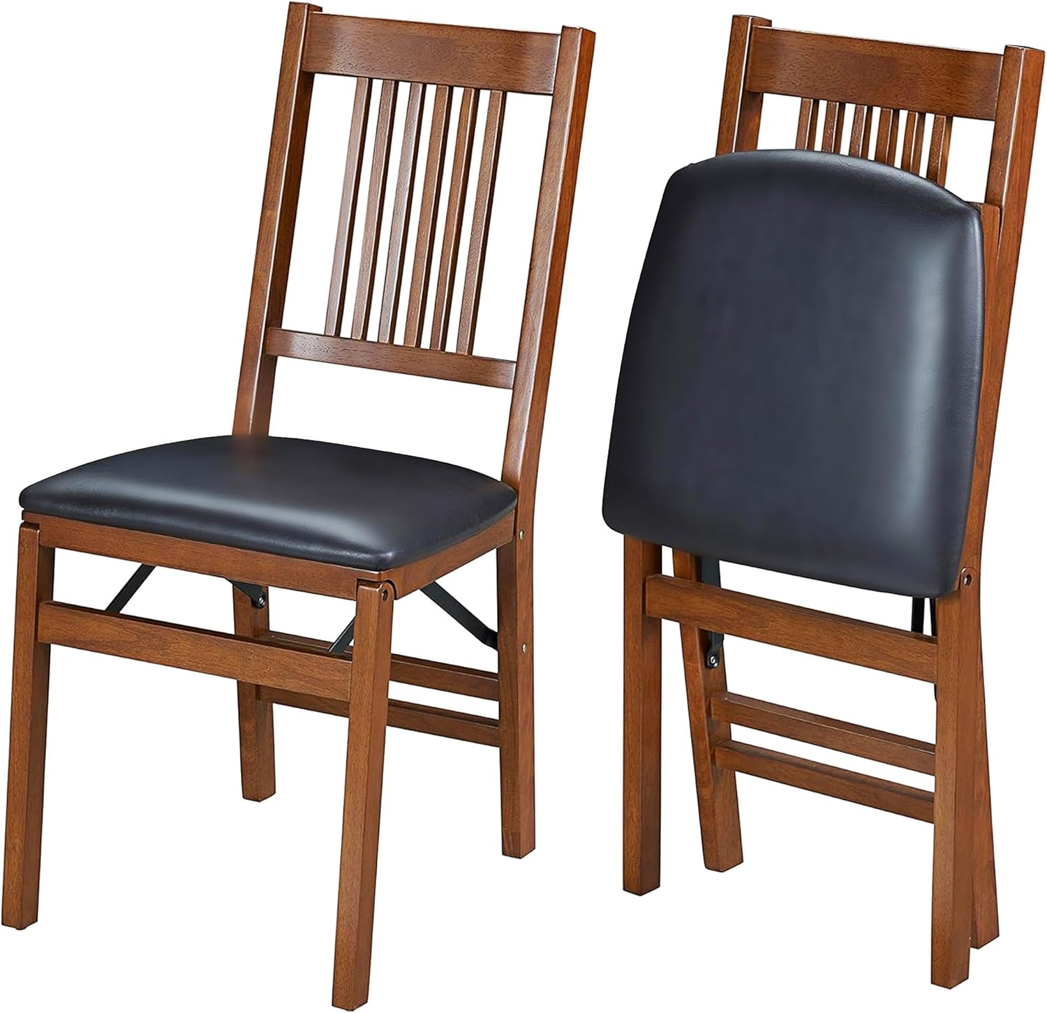 MECO Stakmore True Mission Wooden Folding Chairs with Padded Seats, Set of 2 - No Assembly Foldable Dining Chairs, Steel Folding Mechanism, Upholstered Cushion, Space-Saving, Fruitwood Frame