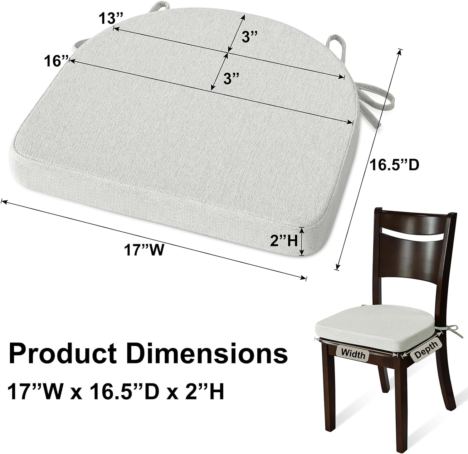 Shinnwa Kitchen Chair Cushions Set of 4, Non-Slip Dining Chair Cushions with Ties and Machine Washable Cover, 4 Pack, 17 x 16.5 x 2in, Off White