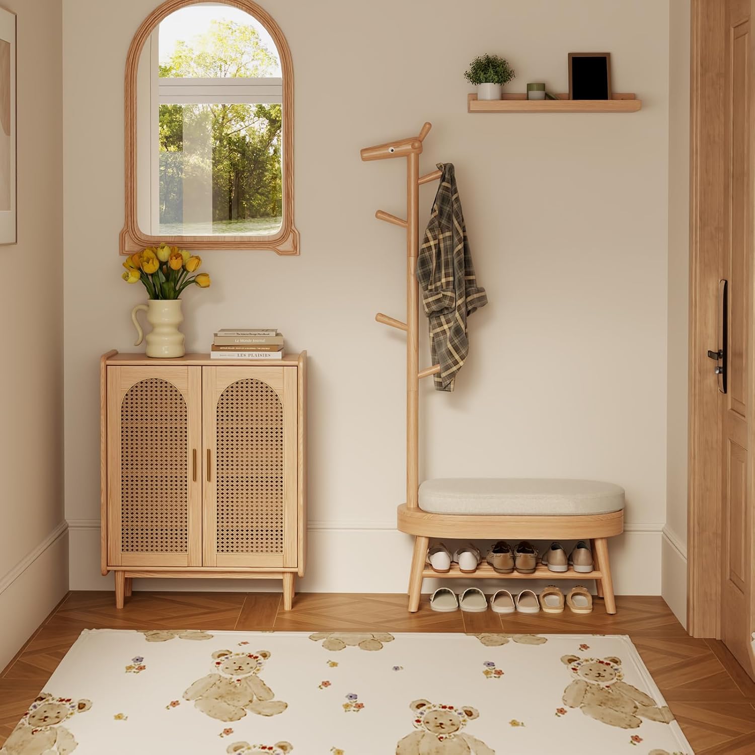 Shoe Bench Entryway,Coat Rack with Shoe Storage, Coat Rack and Shoe Rack, Wooden Narrow Shoe Bench(Natural)