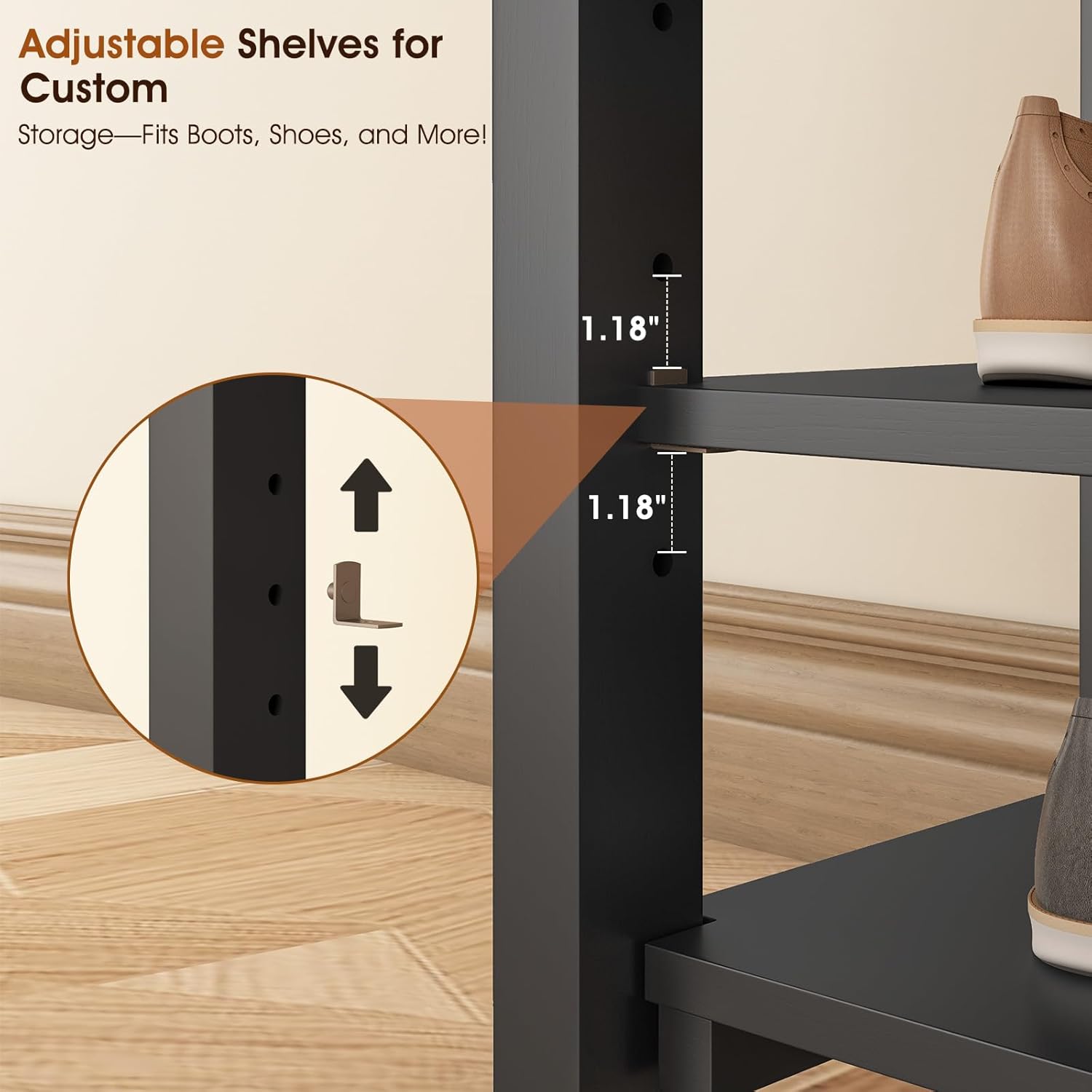 Shoe Rack Bench Seat Rubberwood 3-Tier Wooden Storage Bench 550lbs Compact Mid-Century Modern Design for Entryway, Hallway, Closet, Front Door Entrance, Foyer