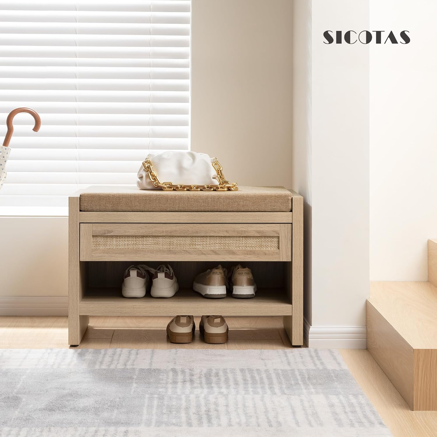Discover More Details of the SICOTAS Rattan Shoe Entryway Bench